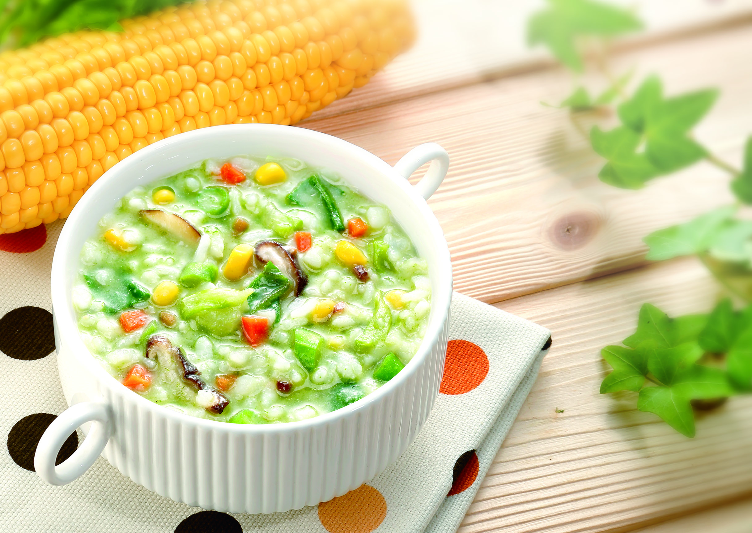 嚴選多種田園蔬菜,粥體清爽甘甜,營養均衡,展現自然健康的純粹滋味。